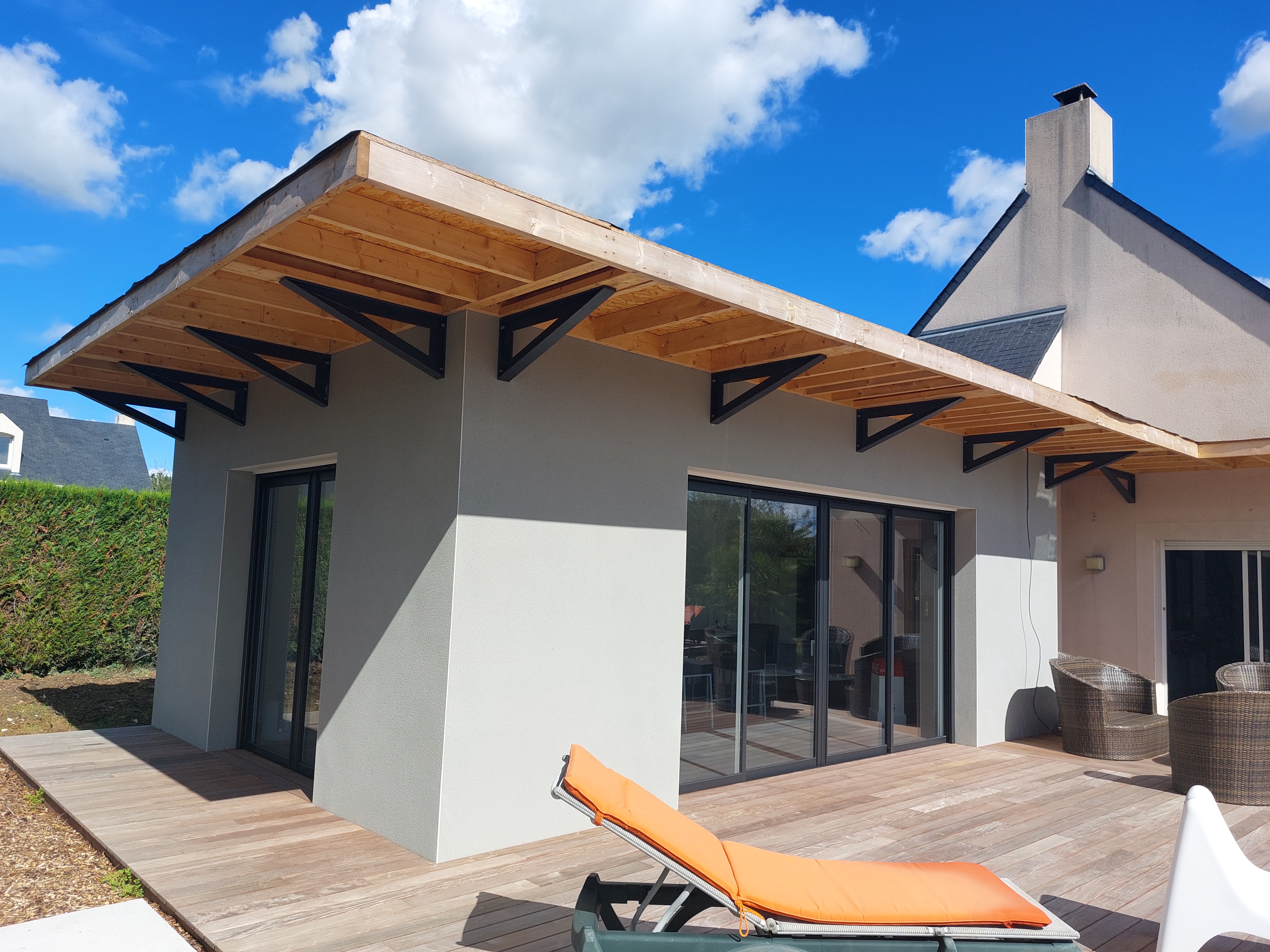 La solution la plus fréquente consiste à agrandir la maison en ajoutant une extension horizontale, soit en prolongement de la toiture existante, soit avec un toit plat dans un style contemporain.
