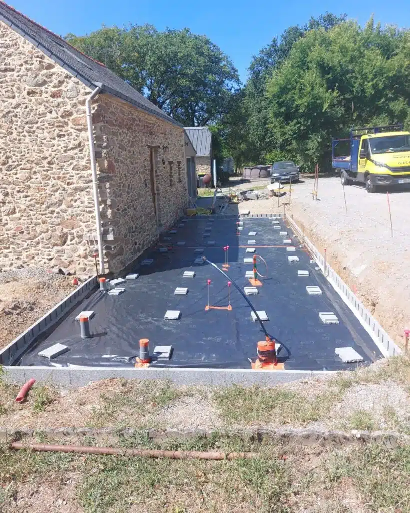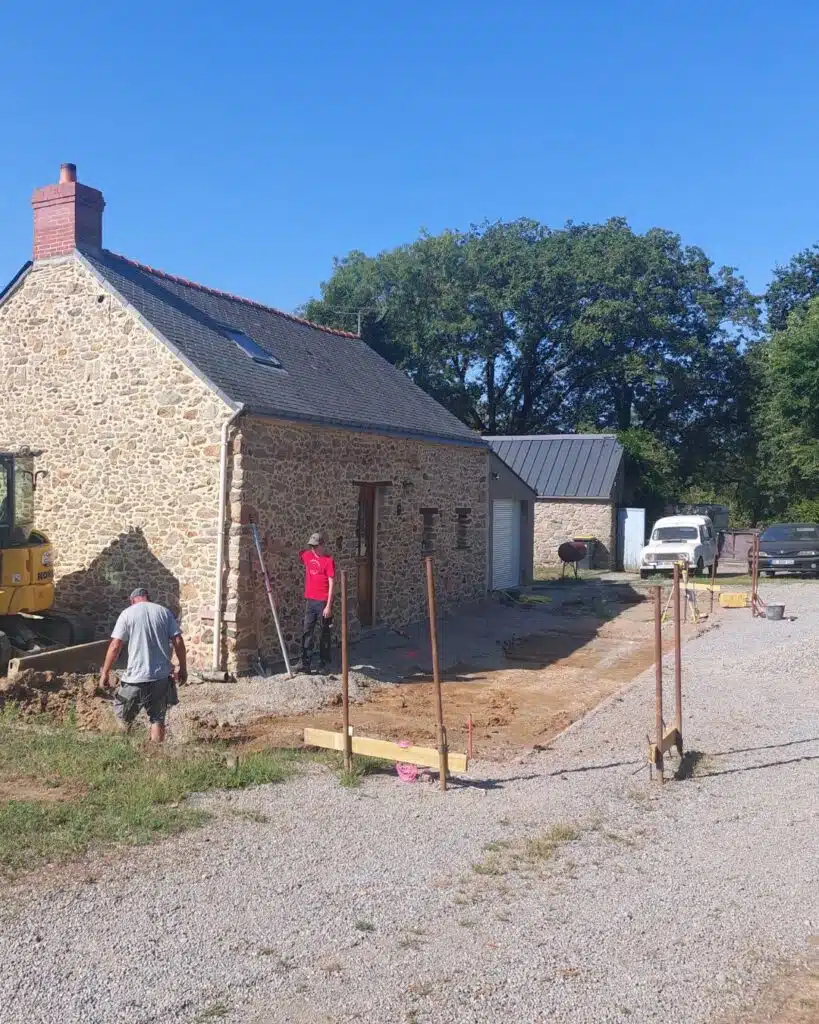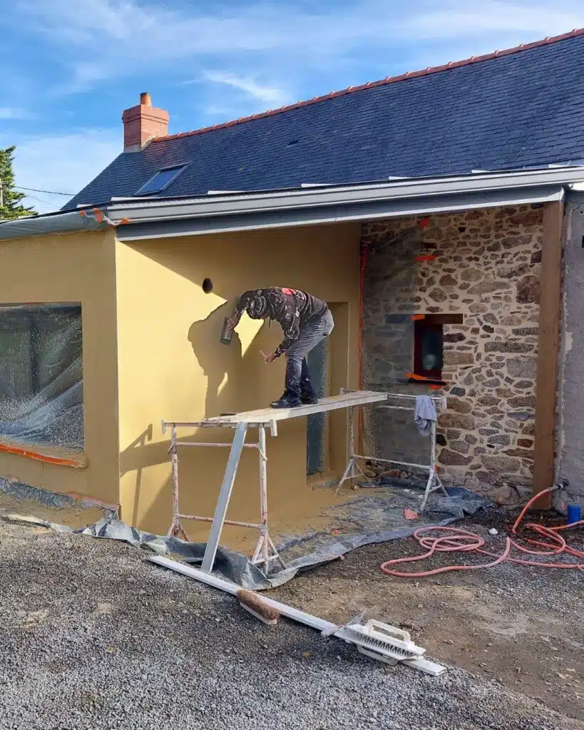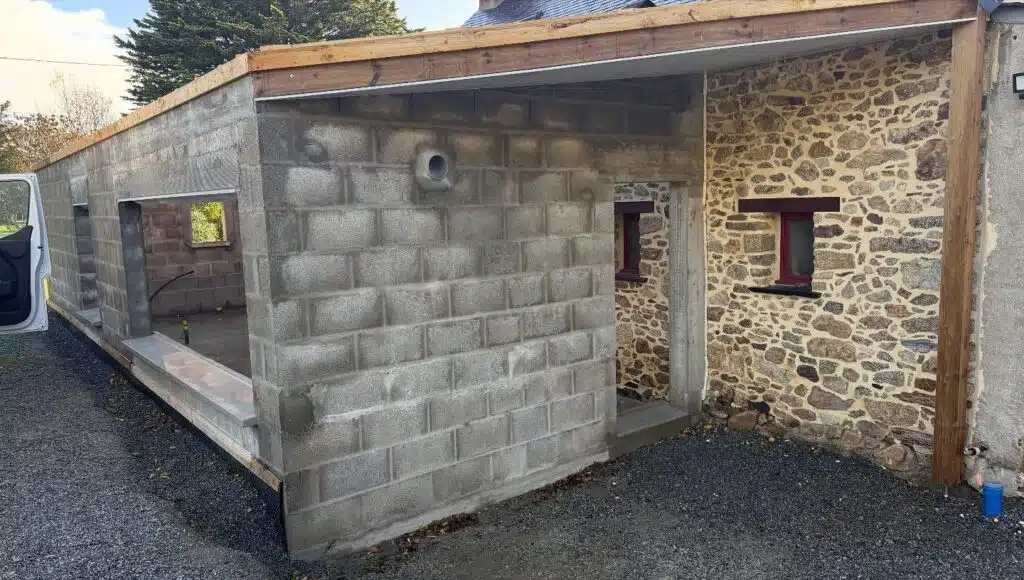 La fin de chantier approche pour l’extension de 30m² d’une maison en pierre réalisée par Réno Bâti Ouest à Besné. Avec cette extension, nos clients vont bénéficier d’un espace de vie supplémentaire composé d’une chambre, d’un dressing, d’une salle d’eau privative et d’un espace baigné de lumière grâce à de larges baies vitrées avec vue sur le jardin.