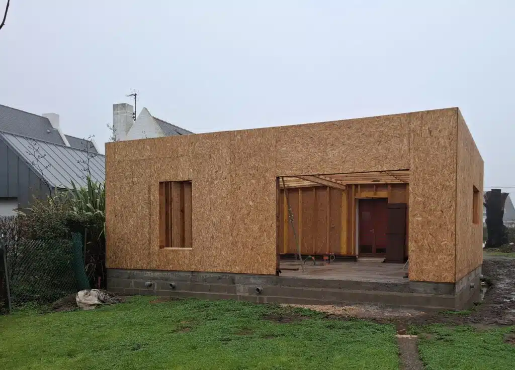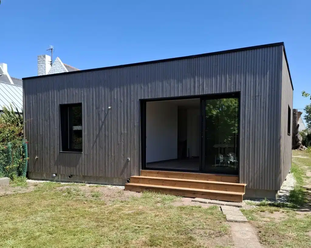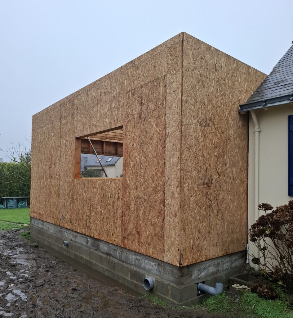 Fin de chantier pour la création d’une extension bois de 55 m² à ossature bois.