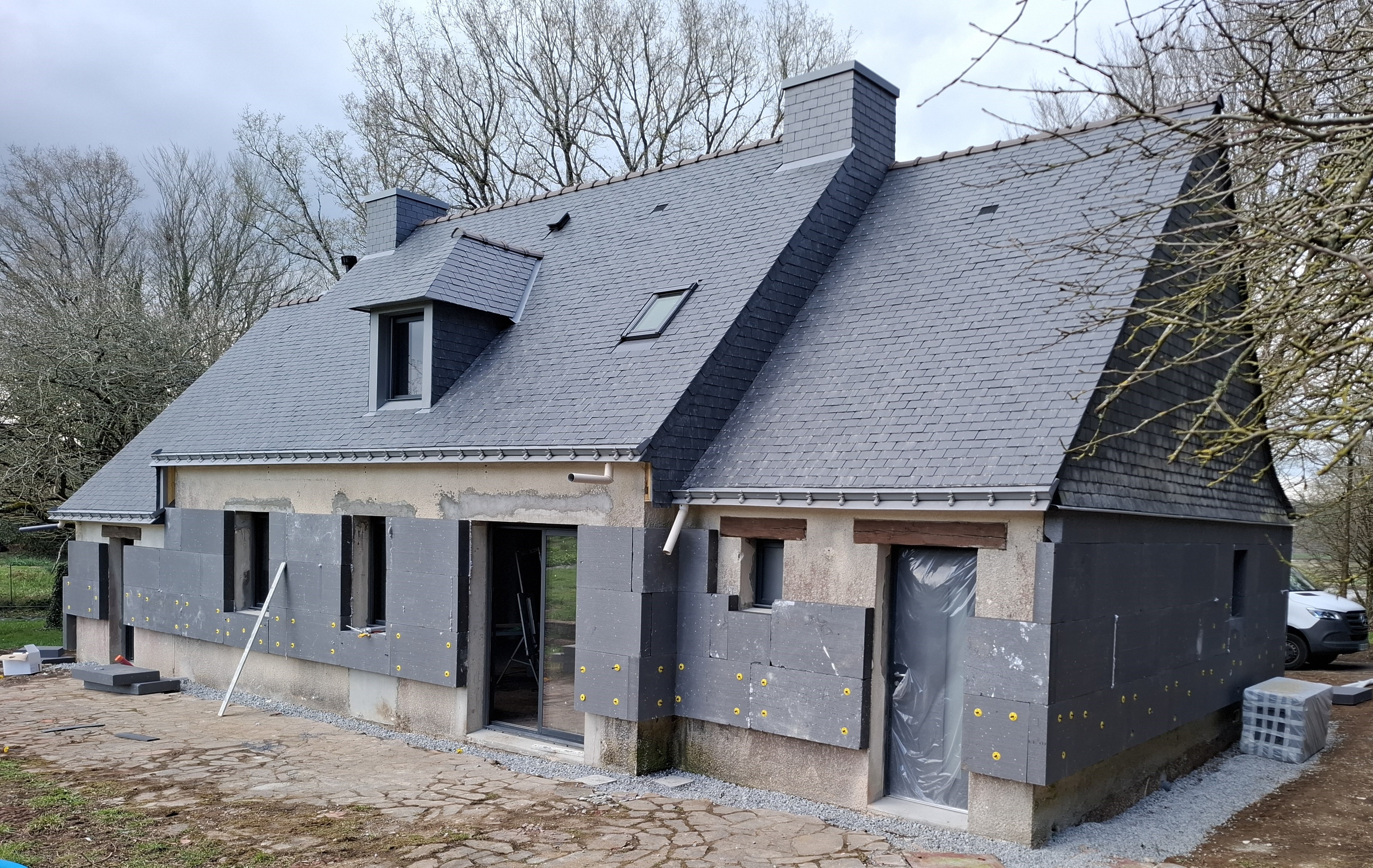Rénovation globale d’une maison avec construction simultanée d’une extension à vivre, création d’ouverture et remplacement des menuiseries.