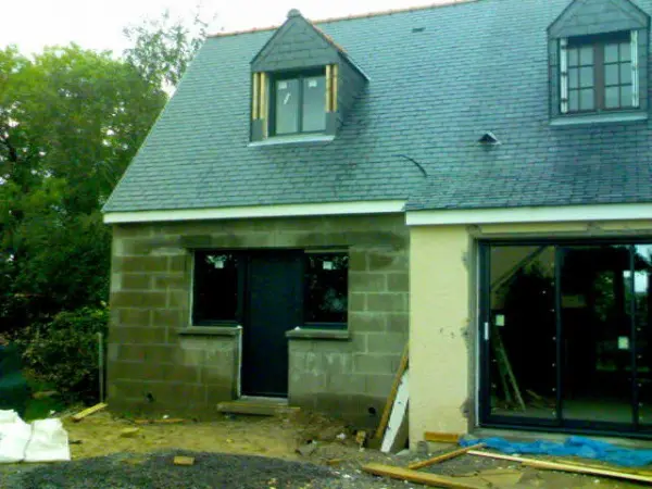 Rénovation globale d’une maison avec construction simultanée d’une extension à vivre, création d’ouverture et remplacement des menuiseries.